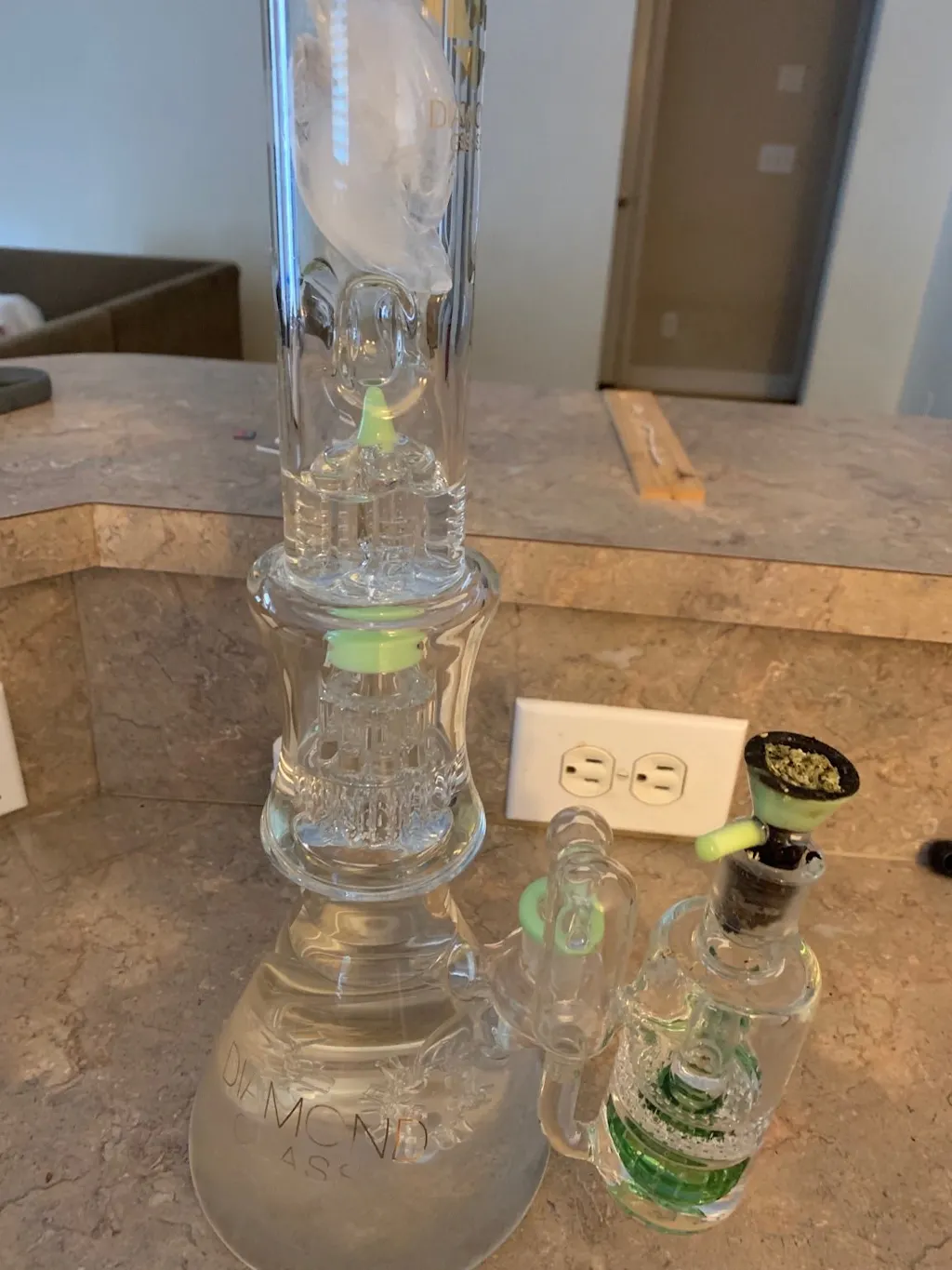 2. She is hard AF to clean, an ash catcher/glass screen or some kind of filter is *highly recommended*(more so filter than ash catcher as to not impede air flow). You don't want little particles getting stuck in those ball percs, its a BITCH and a half trying to get them out and if you don't, they make it to the shower head perc in the middle and then you're stuck shaking and rinsing for ages.(Which is tedious and dangerous because of the size of this thing, and even worse if you have a smaller sink) I have in the past filled her up all the way with a diluted iso solution and let her soak for a few hours to get most particles off before giving a water flush. And I did all this AFTER shaking her down with salt and alcohol to break up most stuff. Sometimes I even pack salt in the down stem and then soak the salt with alcohol and let it sit before shaking it. Cleaning her with those percolators is truly an intensive process!